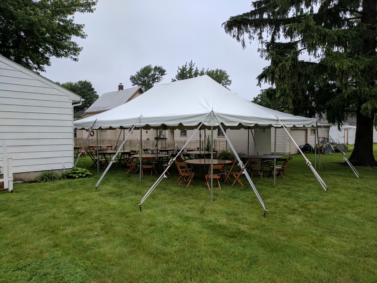 • 20' x 40' Pole Tent. 20' x 40' High Peak Pole Tent. 20' x 40' Pole Tent, Rope Lights. 20' x 40' Pole Tent, Rope Lights. 20' x 40' Pole Tent. 20' x 40' Pole Tent. 20' x 40' Pole Tent. 20' x 40' Pole Tent, White Padded Chairs, 8' Banquet Tables with White Plastic Table Covers ('Kwik' Covers). 20' x 40' Pole Tent. 20' x 40' Pole Tent.
