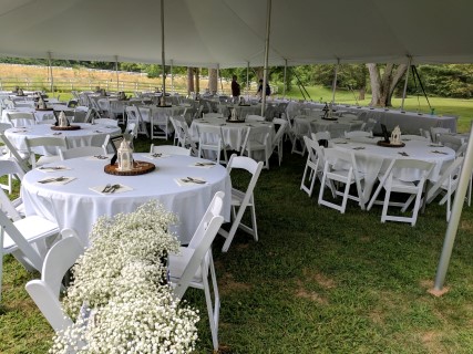 • 60" Round Table. 20' x 30' Pole Tent, Wood Chairs, 60" Round Tables. 20' x 30' Pole Tent with Blue Stripe, 6' Banquet Tables, 60" Round Tables, White Steel/Plastic Fanback Chairs. 40' x 60' Pole Tent, White Padded Chairs, Round Tables, Linens. 10'x 10' Frame Tents, 40' x 60' Pole Tent, White Padded Chairs, Round Tables, Linens. White Steel/Plastic Chairs, 60" Round Tables, Linens, Tent Lights. White Padded Chairs, 60" Round Tables, Linens, Dance Floor. White Padded Chairs, 60" Round Tables, Linens, Dance Floor.